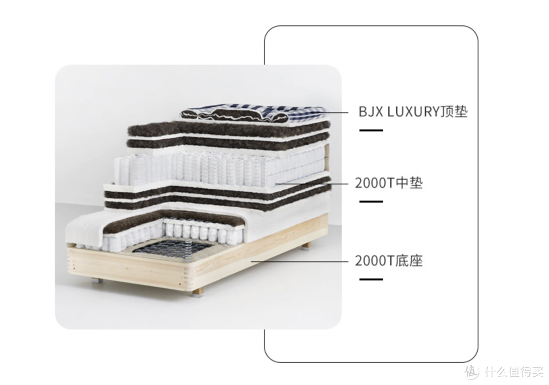 虽然当时不太懂,但除了价格贵一些也不算是踩坑,娜莎的配置还是很豪华的,尤其是填充层很厚,包括乳胶层、超柔海绵,表面材质和定制弹簧的品质也好,整体睡感偏软,包裹感十足 。