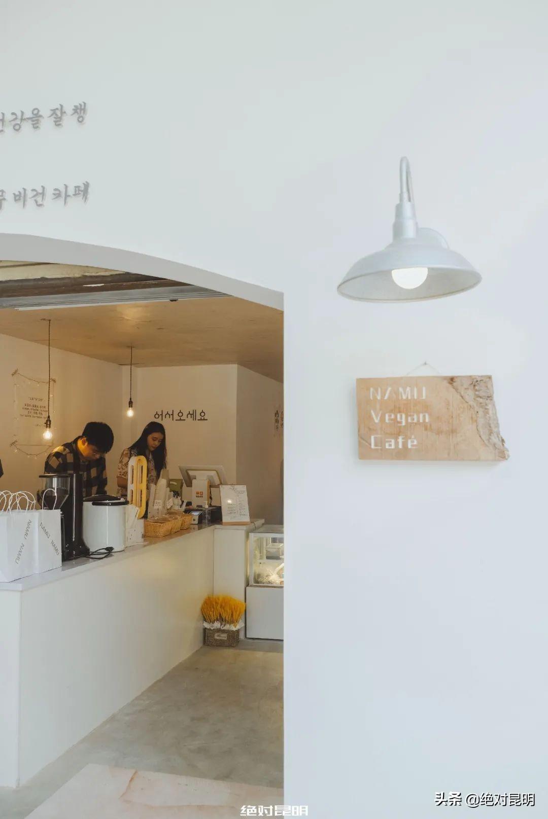 白色吧台后面是一位妆容精致的漂亮小姐姐,“韩系素食咖啡”的概念,正是由她从韩国带回了昆明。