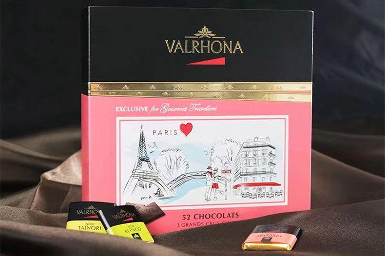 法芙娜的这款巴黎精选巧克力礼盒很适合情人节送礼,粉色的四方形外包装盒,看起来好似一瓶巨大的法国香水,里面共有52块巧克力,这个数字也有“我爱你”的含义,三种口味,有花香馥郁的阿帕可、酸红色果味的曼特尼、果香浓郁的塔诺丽,三种巧克力的可可也分别产自三个,严谨、高品质的用料,让爱人吃的安心放心。