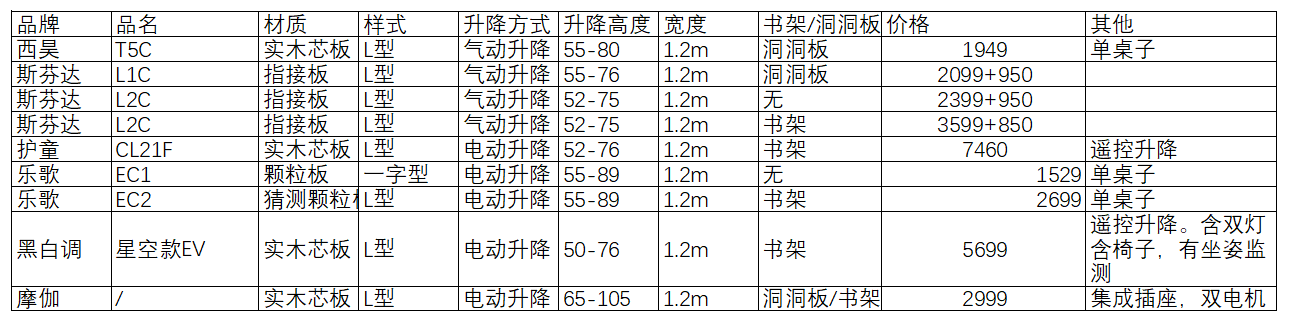 3000+:再往上就是高端产品了,材质都是实木芯板、指接板,升降方法齐全,各家开始比拼一些额外内容。