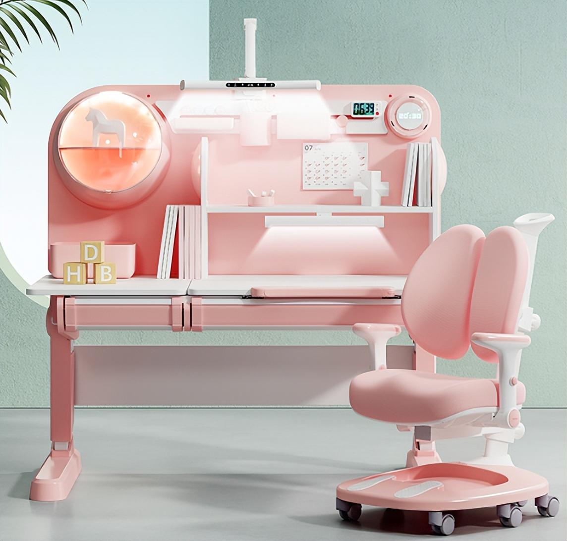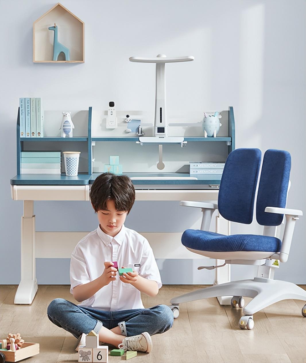 还有一个黑白调,售价6000左右,功能上来说,有个比较独特的智能语音坐姿提醒系统,颜值比较高,加入了双感光灯,不用担心亮度不够了。材质用的是实木芯板。高度50-76cm。
