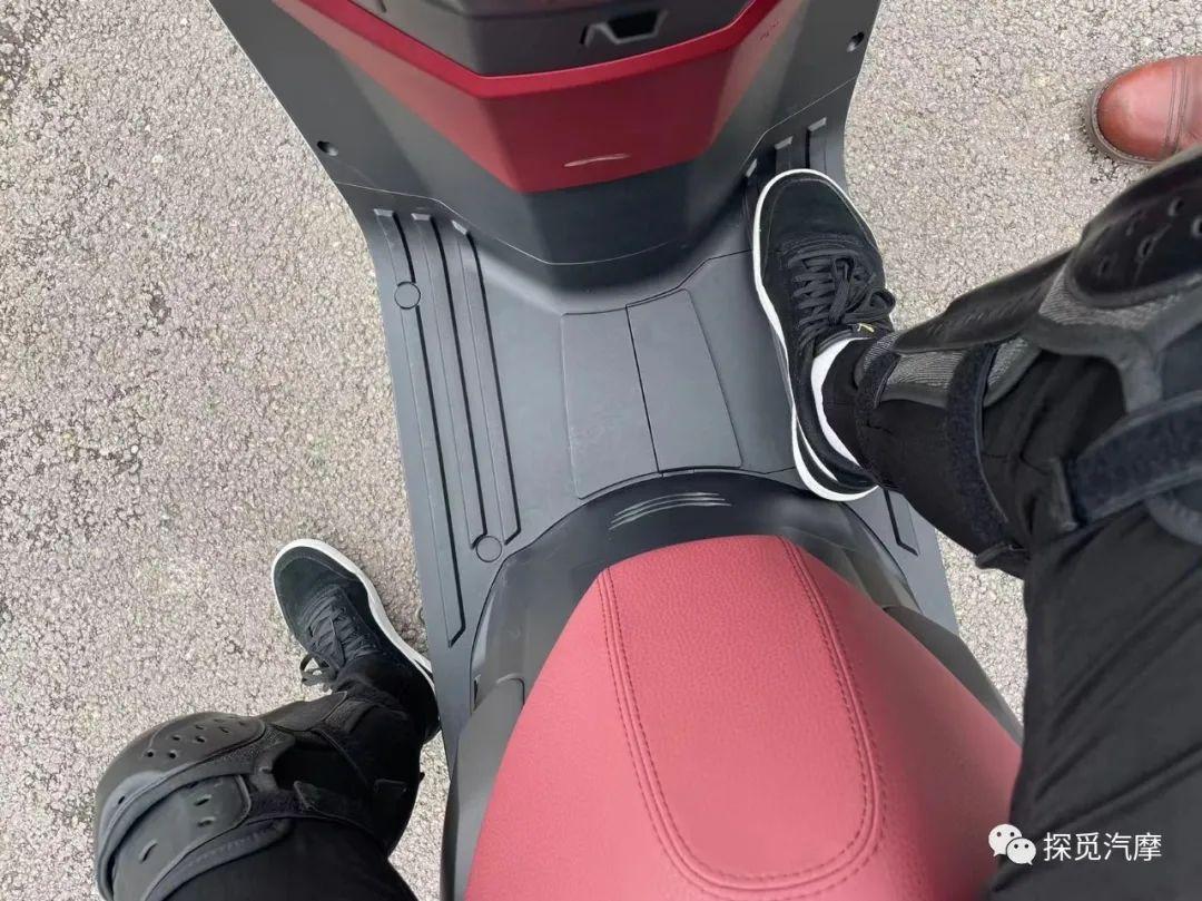 踏板车有一点好,就是如果实在觉得落脚没底,你就可以往前坐,一直坐到座椅前端,那妥妥地就是双脚全脚掌踩实地面。