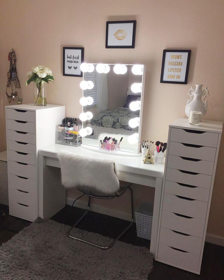 梳妆台想要更多收纳空间,可以额外搭配一个小柜子,放在梳妆台的底下或者旁边,这样可以增加很多收纳空间!