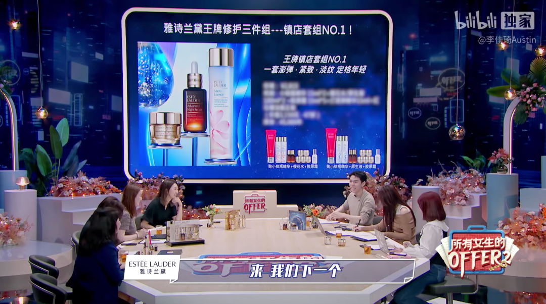 节目中,在雅诗兰黛各个品牌的offer环节之前,还有一个产品介绍环节。品牌产品负责人仿佛在模拟带货,雅诗兰黛借此让自家潜在的自播主播和广大消费者见了面,达到了锻炼队伍的目的。