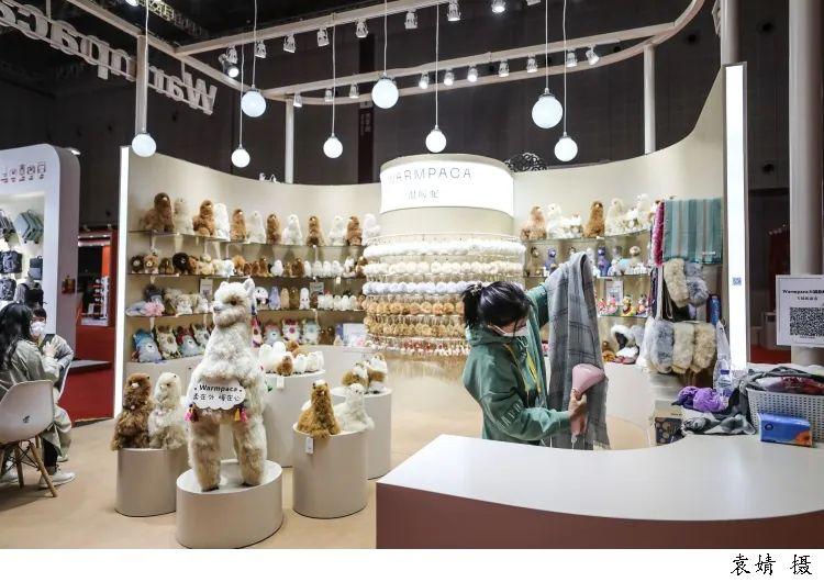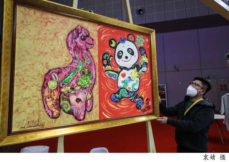 ▲今年是新西兰与中国建交50周年,也是新西兰连续第五次参加进博会。为纪念这一特别的年份,新西兰参展商专门邀请新西兰和中国艺术家共同创作了一幅名为“熊猫中中与羊驼西西欢聚2022年”的专题画作带到进博会现场。