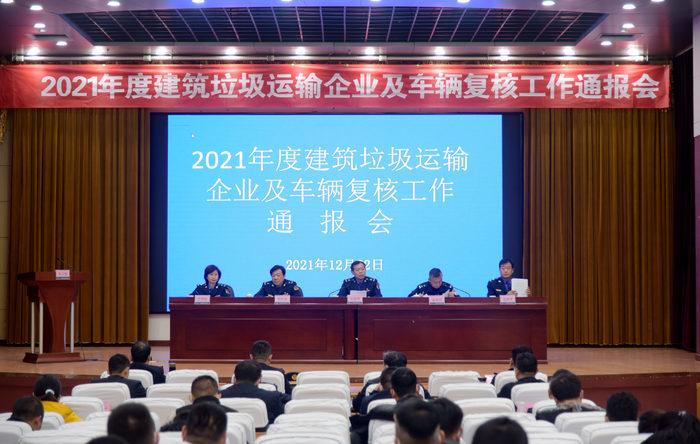12月22日,济南市召开2021年度建筑垃圾运输企业及车辆复核工作通报会。市城管局党组成员、副局长宋道勇参加会议并讲话,市城管局建筑垃圾监督管理处处长解庆法主持会议。会上,济南市渣土处置中心主任范新华通报了《2021年市内七区建筑垃圾运输企业及车辆年度复核工作通报》情况,全市120家建筑垃圾运输企业“过检” ,4家企业被暂停资格。