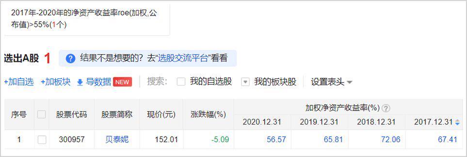 从盈利能力上看,贝泰妮净资产收益率近4年均超过55%,这样逆天的成绩不仅远远超过其他化妆品公司,在整个A股市场上,仅此一家。大多数业绩的消费大白马,净资产收益率也不过常年保持在20%左右。