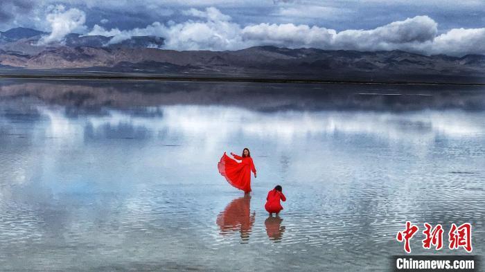 图为游客在茶卡盐湖拍照。 孙睿 摄
