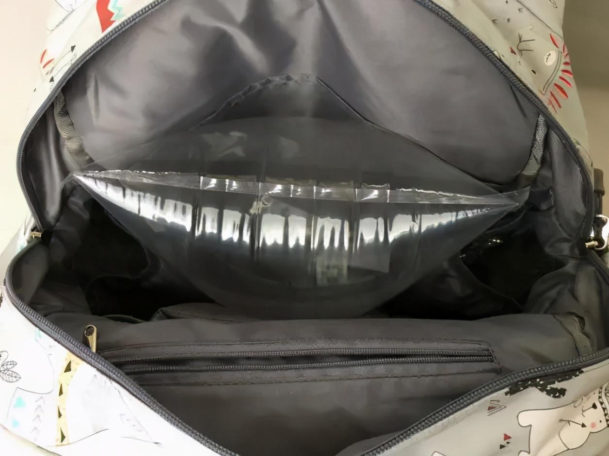 而an*llo由于并不是标准的“妈咪包”,隔层口袋少,也没有特殊口袋设计,所有东西只能全部一股脑塞进去,没办法像其他妈咪包一样对宝宝的物品分门别类,拿取东西的时候不太方便。