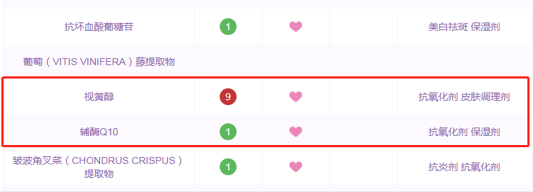 顺便提一句,这一两年白藜芦醇是炒得很火的一种成分,但实际上它并不是一个靠单打独斗就能够达到很抗氧化效果的成分,所以里面添加了辅酶Q10、A醇、VC和VE等多种成分,到“鸡尾酒式”抗氧化、抗衰老的效果。