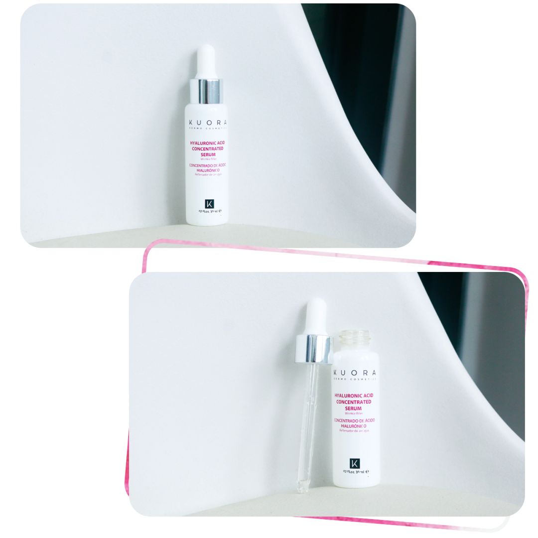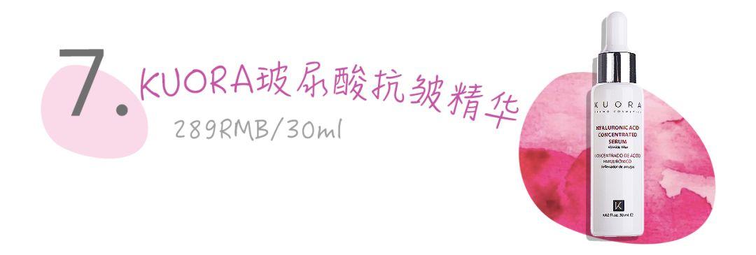 KUORA这款精华有一个专利技术,里面拥有高分子量和低分子量透明质酸,小分子玻尿酸可以直接到达基底层进行一个深层补水,不仅仅是停留在皮肤表面的水润感。所以它在一定程度上能够改良,皮肤因为缺水干燥而导致的干纹。