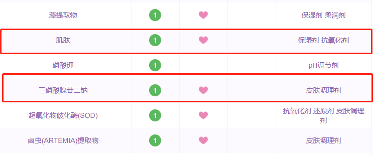 矿物盐可以有效促进浅层细胞的代谢,活化角质层的细胞,肌肽有一定的舒缓镇定作用,而三磷酸腺苷钠能为底层细胞提供能量和保护。