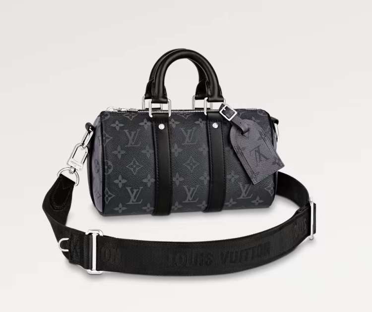 本款LV Keepall 25 手袋取材 Monogram Eclipse Reverse 帆布,展现路易威登经典图案的优雅重绎。加固饰带和皮革延续 Keepall 系列的标志性元素,拉链开合令个人物品随行。硬箱相伴,轻盈出行,巧思与奇想毕现,悦享假日时光。随性穿搭勾绘男士型格本色,经典皮具和个性配饰为美好假日增彩赋新,彰显旅行风尚。