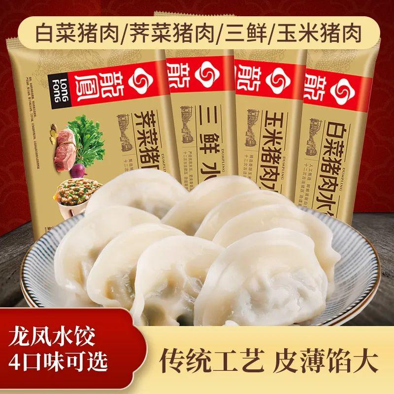 龙凤水饺有荠菜猪肉、玉米猪肉、白菜猪肉及三鲜等口味,整体较为常规,并未推出新奇口味,因猪肉含量较少,肉香味不及湾仔码头,整体清淡爽口,口感较为一般,但价格实惠,每袋690g售价不到20元。