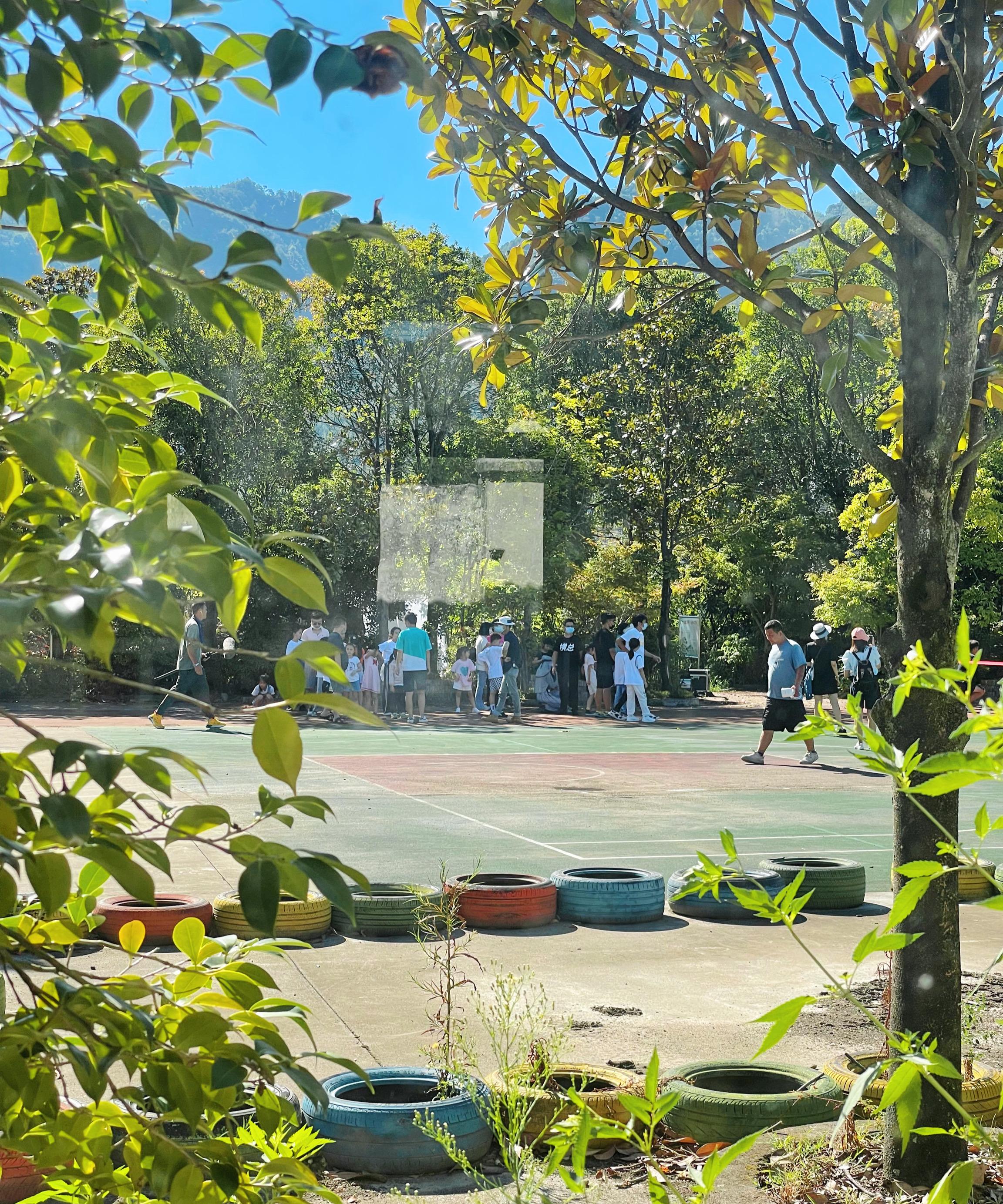 图|孩子们在操场上拍戏时,家长在房间等候