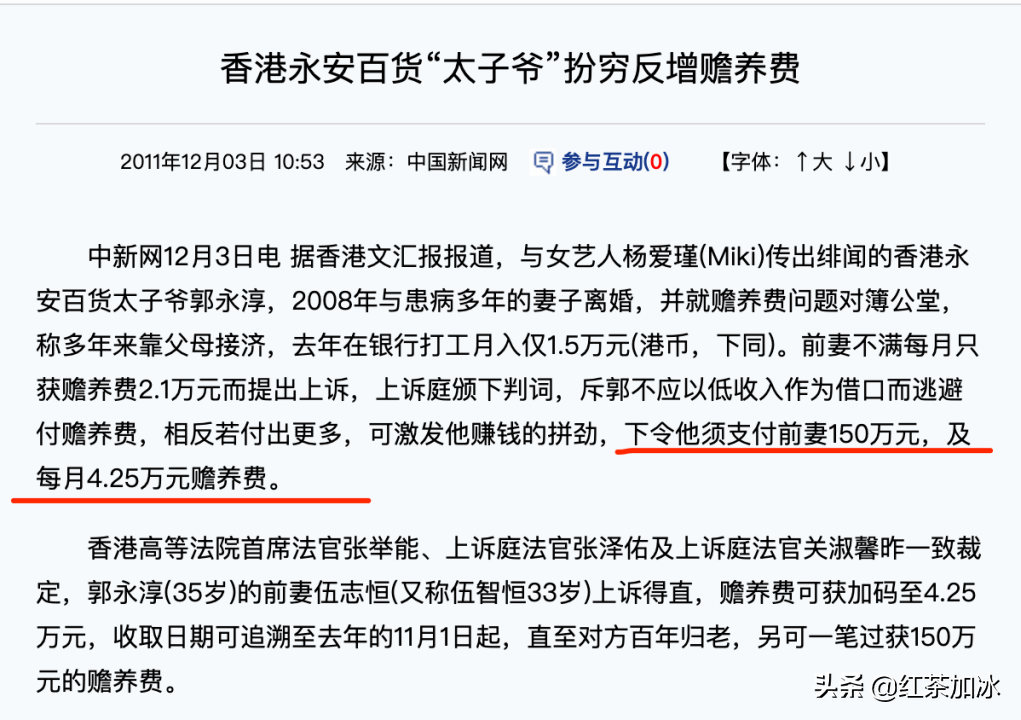 因此在离婚时,两人就赡养费问题对簿公堂,但作为“富二代”的郭永淳怎么着?