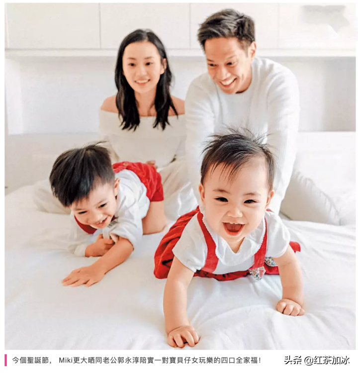 婚后,杨爱瑾成功三年抱两,育有一对子女。