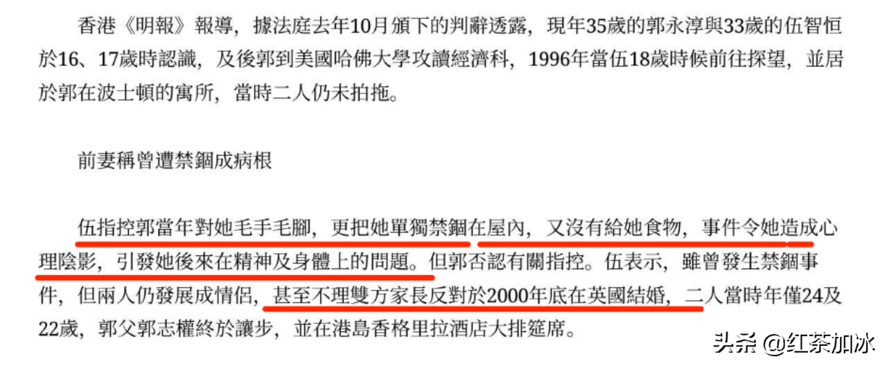 2011年12月,法庭改判郭永淳每月支付伍智恒赡养费42500港元,另须一次过付给伍智恒150万港元赡养费。