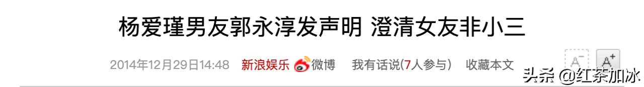 「新浪娱乐」——杨爱瑾男友郭永淳发声明 澄清女友非小三