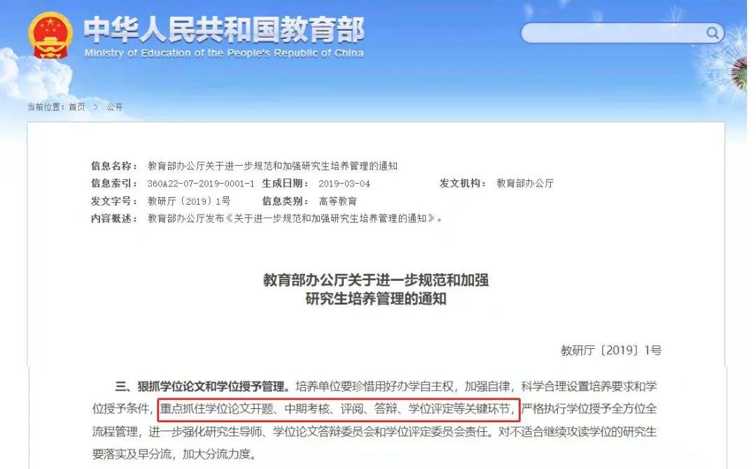 另一方面,教育部等愈加严控研究生教育质量,也是重要原因之一。例如,重视研究生中期考核。2017年教育部和国务院学位委员会发布的《学位与研究生教育发展“十三五”规划》强调:“要完善研究生培养分流退出制度,加强研究生课程学习、中期考核等环节的过程管理和考核”。2019年教育部发布的《关于进一步规范和加强研究生培养管理的通知》再次强调:“重点抓住学位论文开题、中期考核等关键环节” 。
